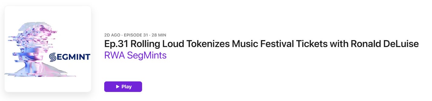 In today’s RWA SegMint’s Podcast, learn how Rolling Loud is tokenizing music festival tickets. I give this one a 10/10!