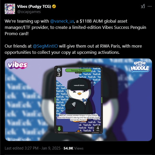 One highlight was the promo card featuring the VanEck Intern Persona. There will be several ways to get your hands on one, including tokenized versions that will be offered on the SegMint platform.